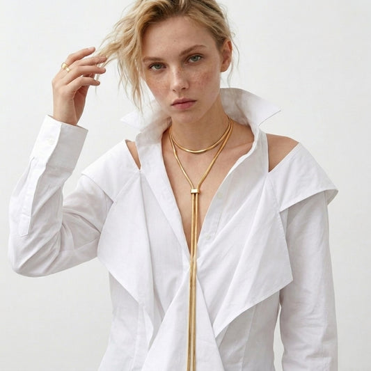 Progettate per l'arte della stratificazione, le nostre collane spaziano dai choker audaci alle catene delicate. Ogni pezzo presenta un resistente rivestimento in oro PVD, assicurando che il tuo look distintivo rimanga impermeabile e brillante in ogni stagione.