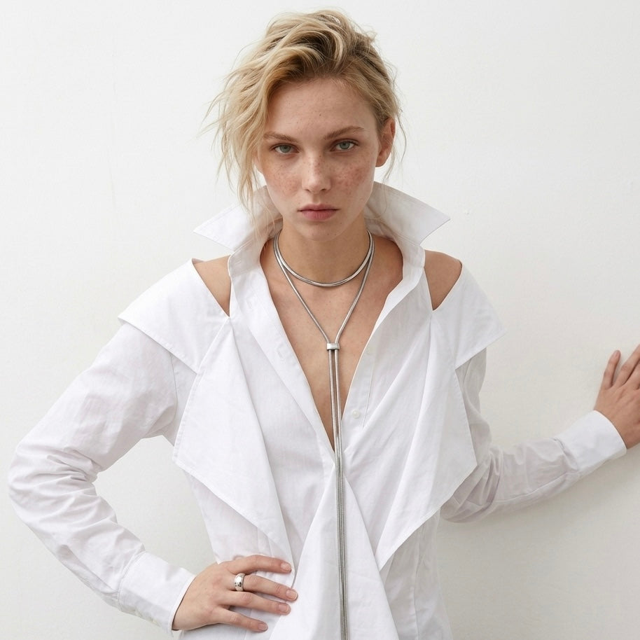 • Eleganza casual: Questa collana può essere abbinata senza sforzo a un outfit semplice e minimalista come una camicetta bianca o una camicia sartoriale, permettendo al design di essere il punto focale del look.